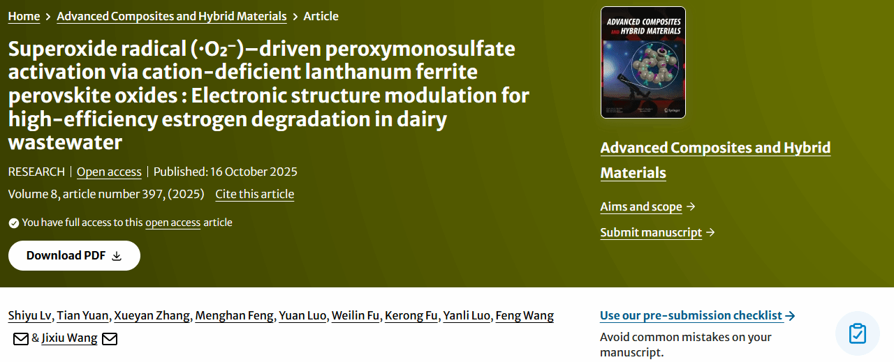 资源与环境学院在钙钛矿控制畜禽废水雌激素领域发表重要成果