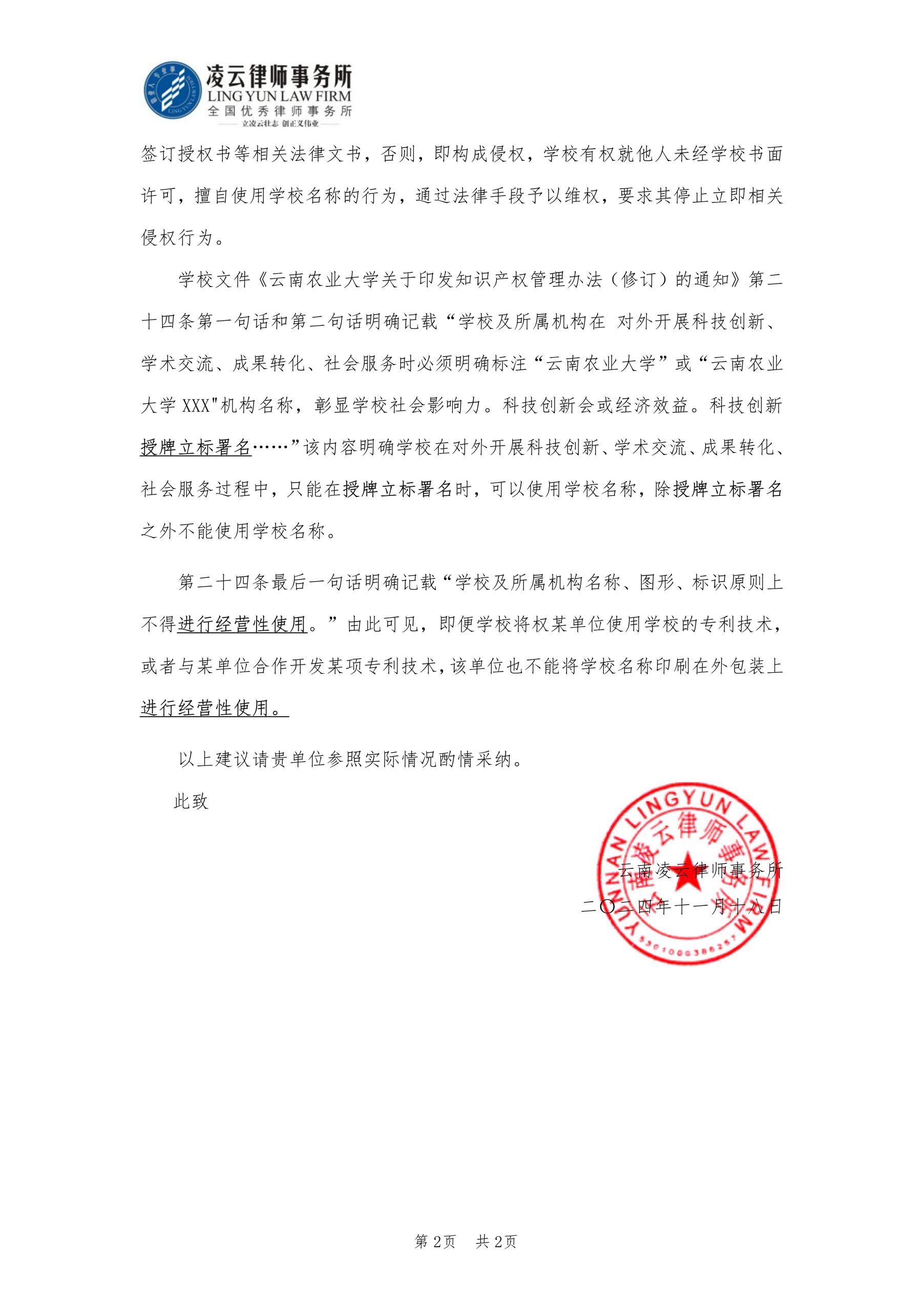 2.当学校科技成果等知识产权通过包括但不限于成果转化等方式已经出让给其他单位或个人的(无论现金、股权等任何形式),其权属已经发生改变,已经不属于学校。此时,任何单位或个人(包括学校各部门、各单位及师生等)未经学校书面同意,亦不得以任何名义,或通过直接、间接等方式使用学校的校名、校徽和校标等相关标识。