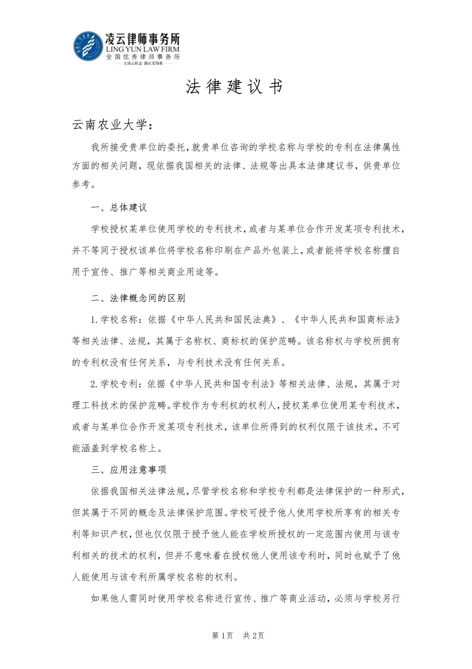 关于使用学校专利权是否同时具有使用学校校名、校徽和校标等名称权问题,经咨询法律顾问,现将回复公示如下,望各学院、部门周知。