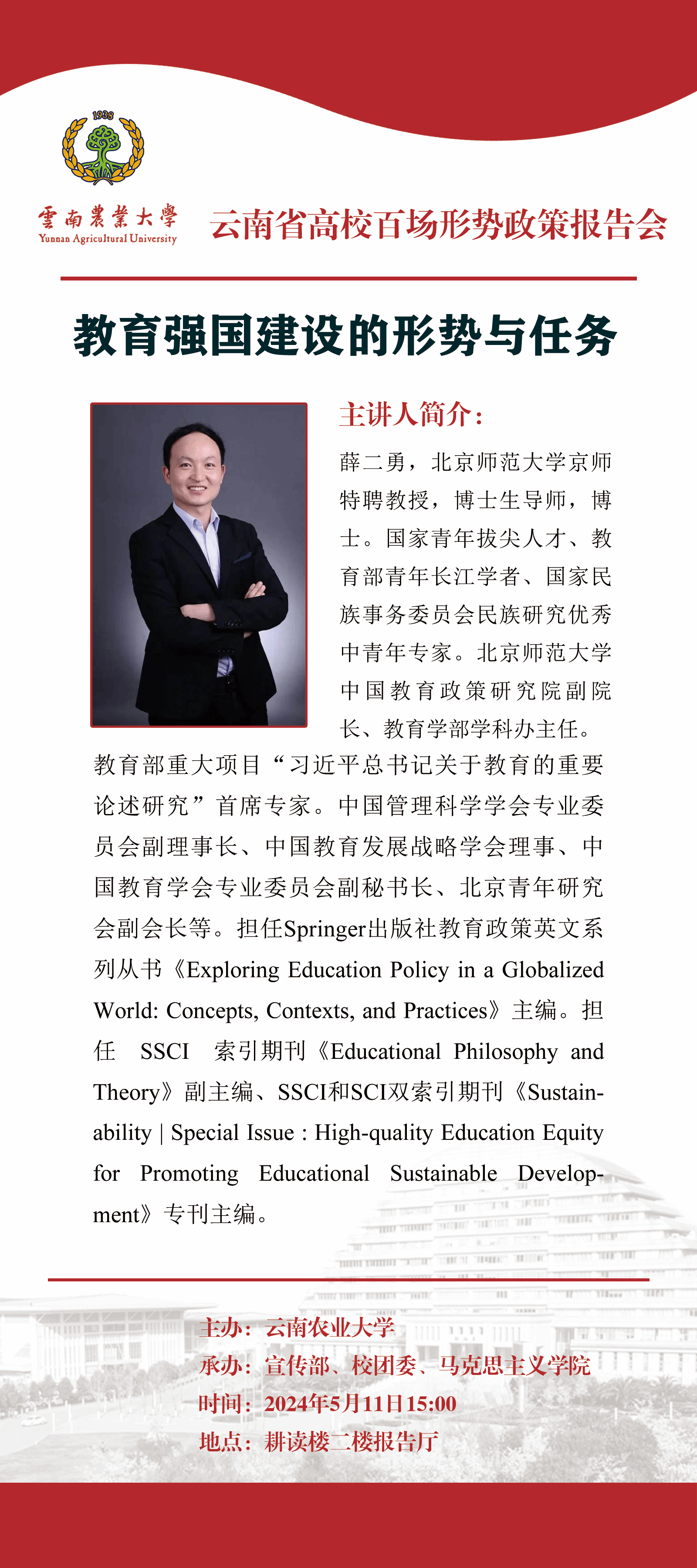 云南省高校百场形势政策报告会:教育强国建设的形势与任务