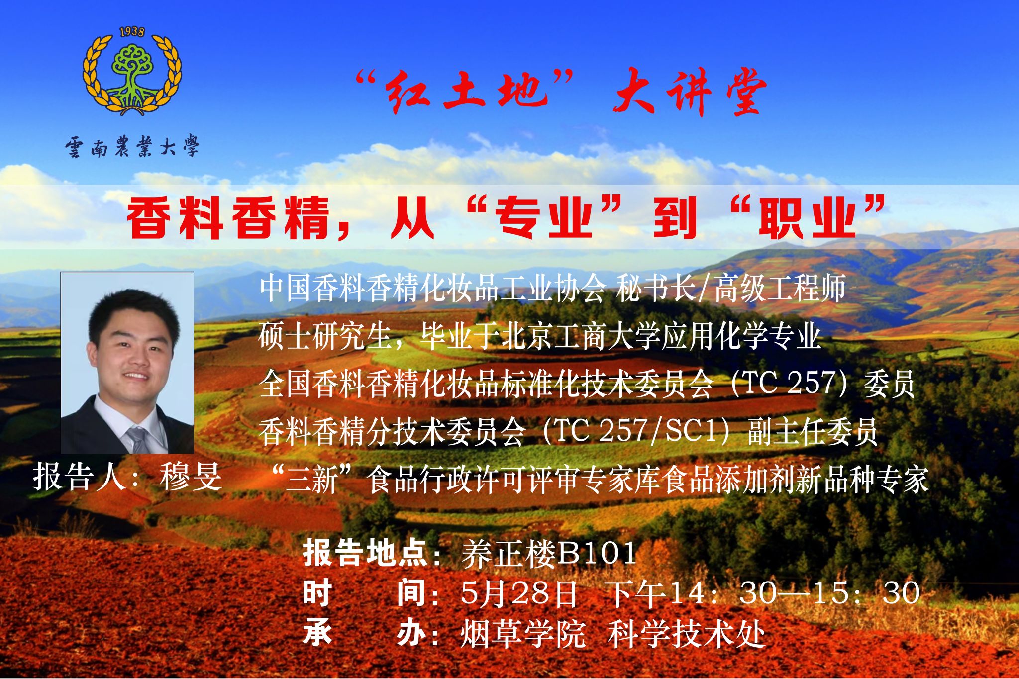 5月28日“红土地”大讲堂:香料香精,从“专业”到“职业”