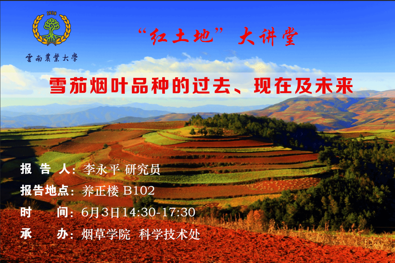 6月3日“红土地”大讲堂:雪茄烟叶品种的过去、现在及未来