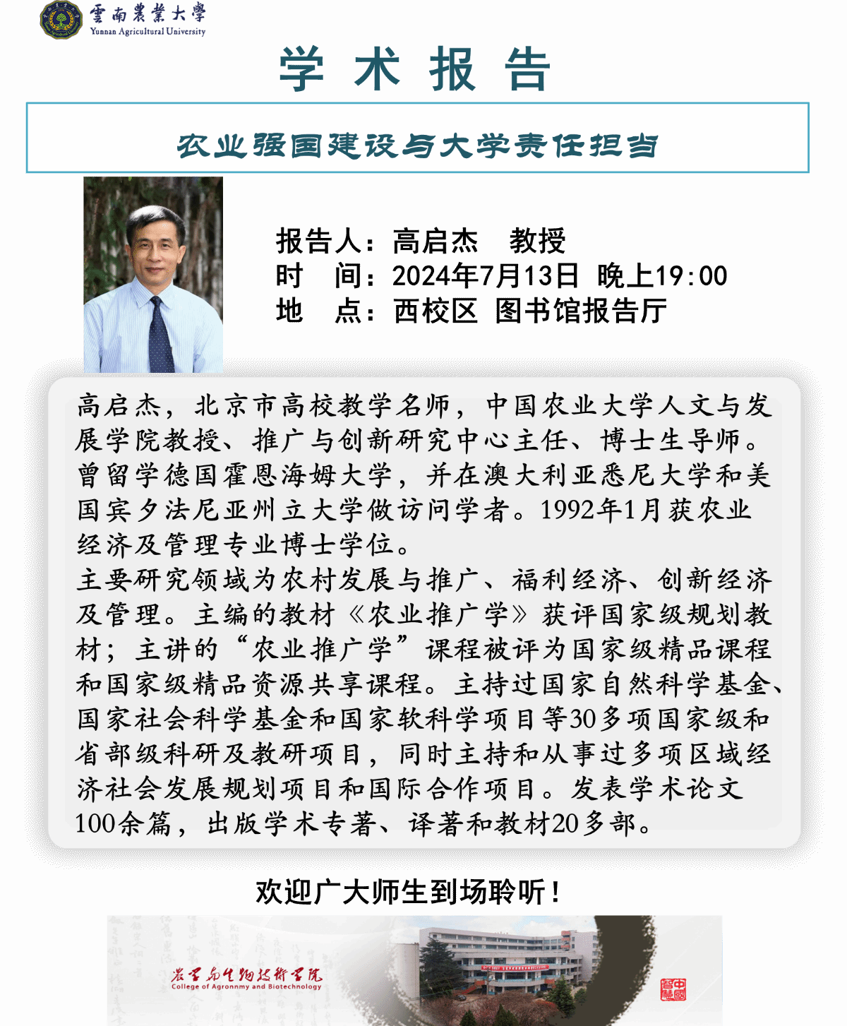 姓名-职称 高启杰 教授 报告地址 图书馆报告厅