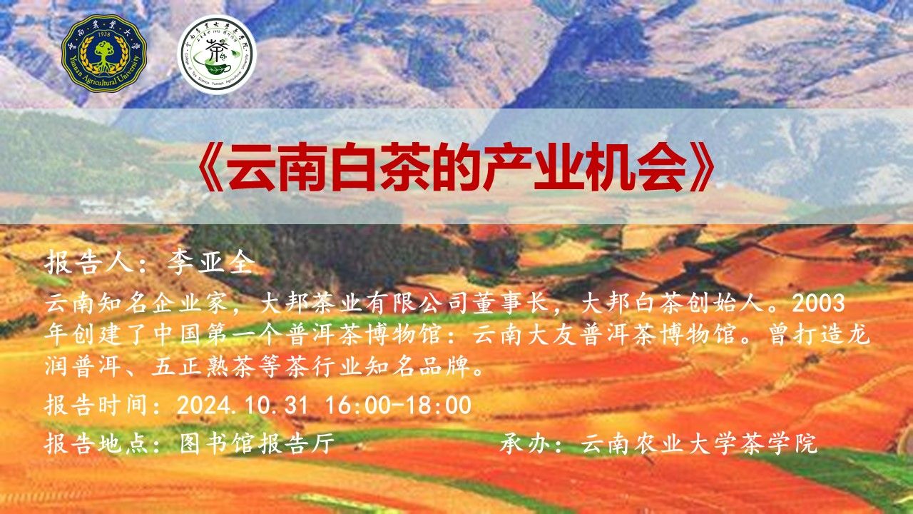 10月31日“红土地”大讲堂:云南白茶的产业机会