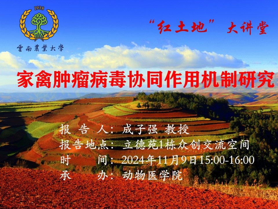 11月9日“红土地”大讲堂:家禽肿瘤病毒协同作用机制研究