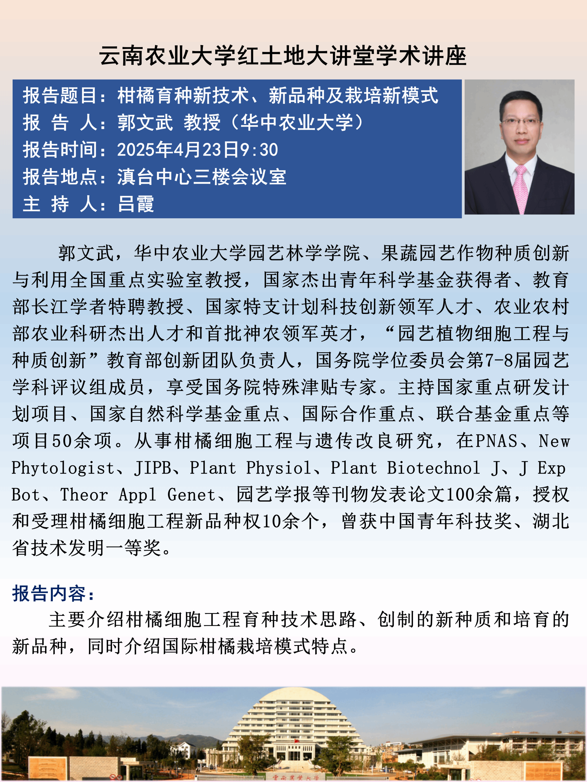 4月23日“红土地”大讲堂:柑橘育种新技术、新品种及栽培新模式