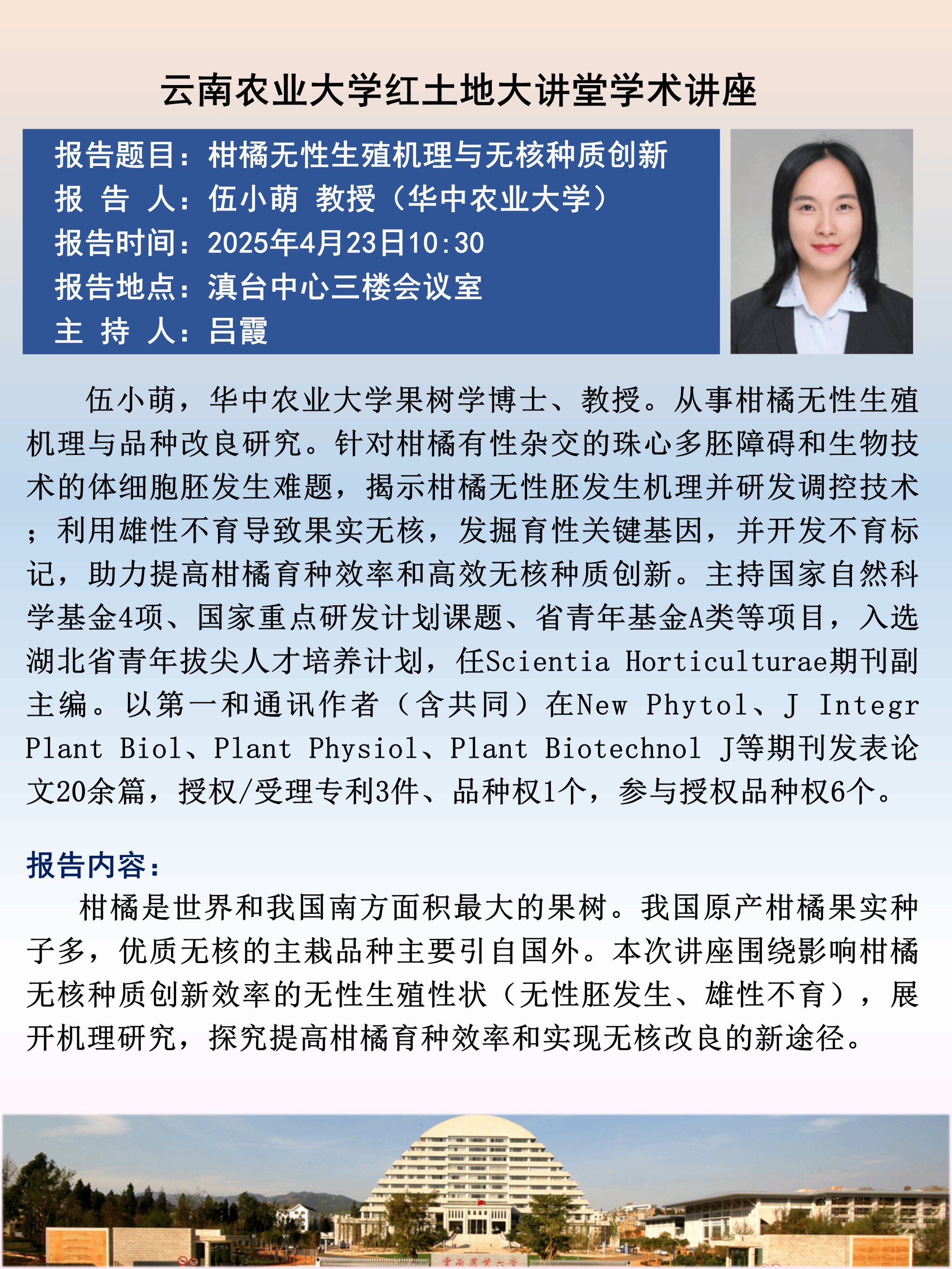 4月23日“红土地”大讲堂:柑橘无性生殖机理与无核种质创新