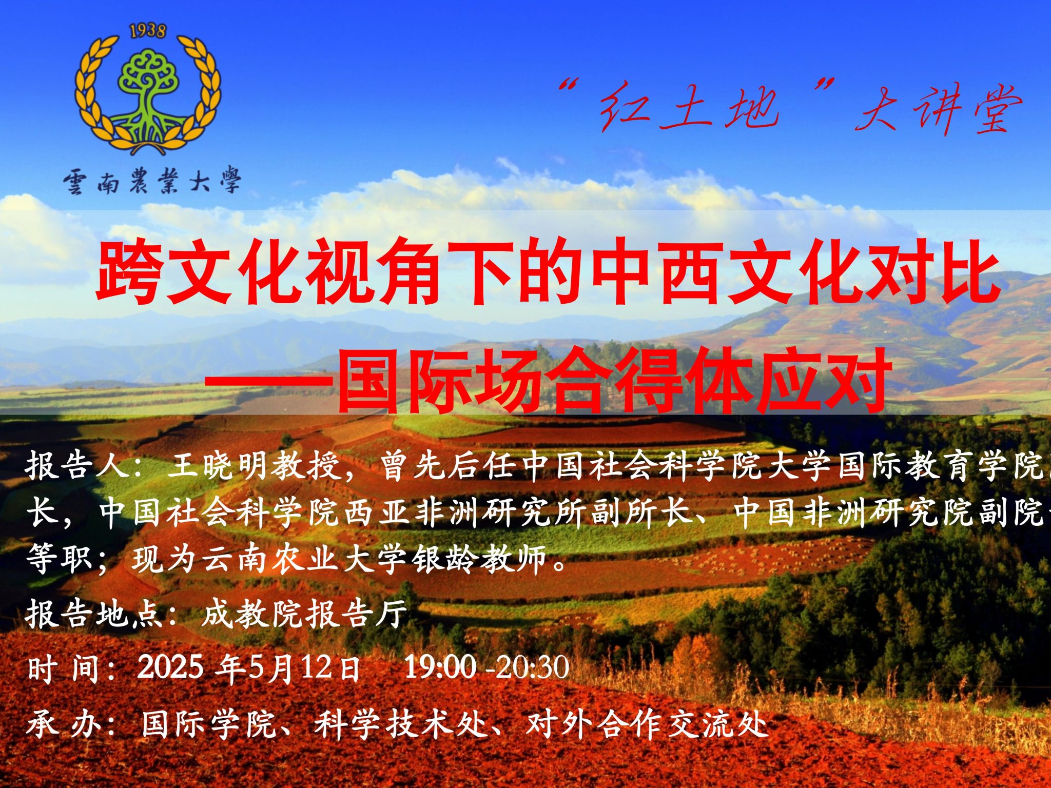 5月12日“红土地”大讲堂:跨文化视角下的中西文化对比国际场合得体应对