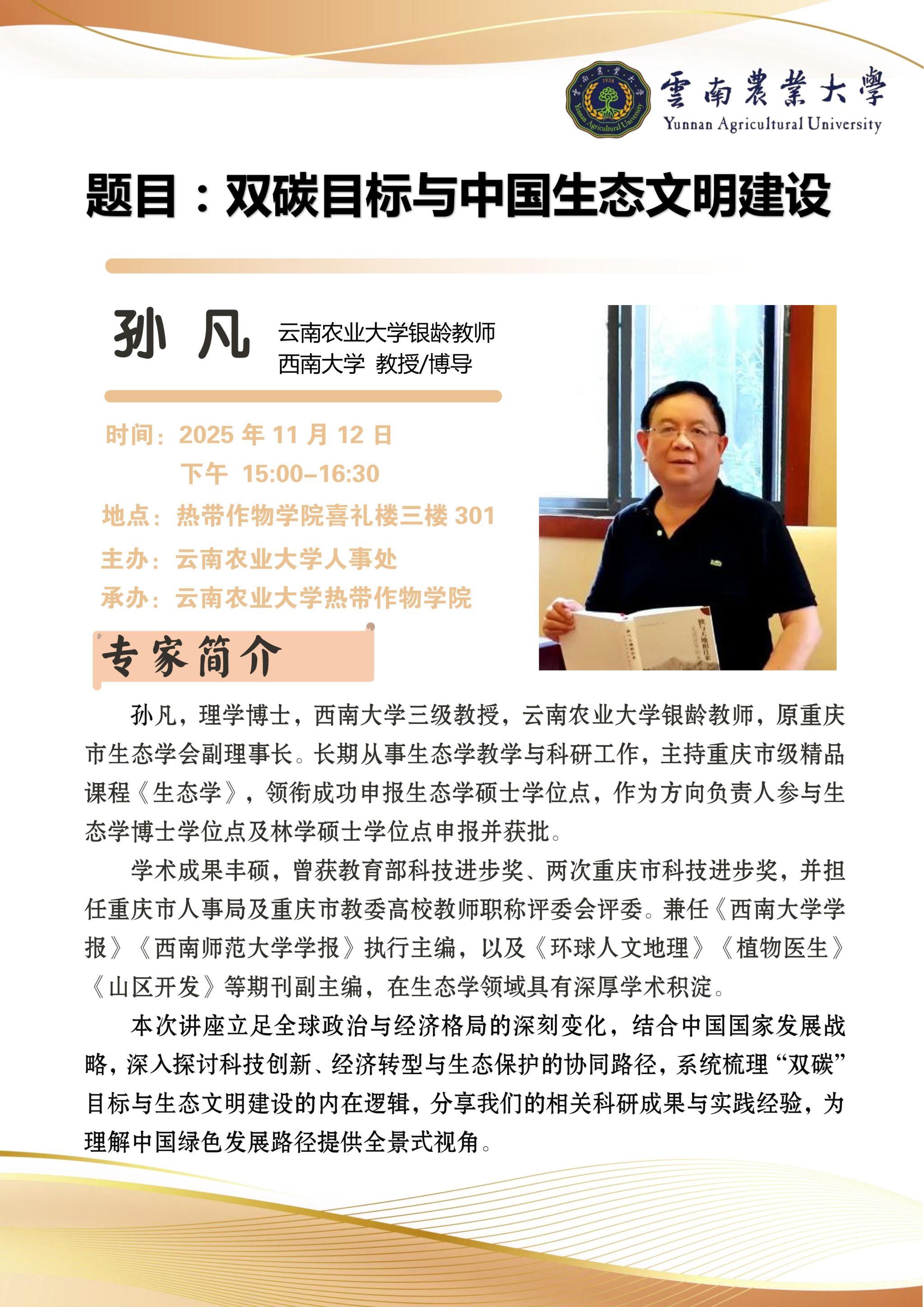11月12日学术报告:双碳目标与中国生态文明建设