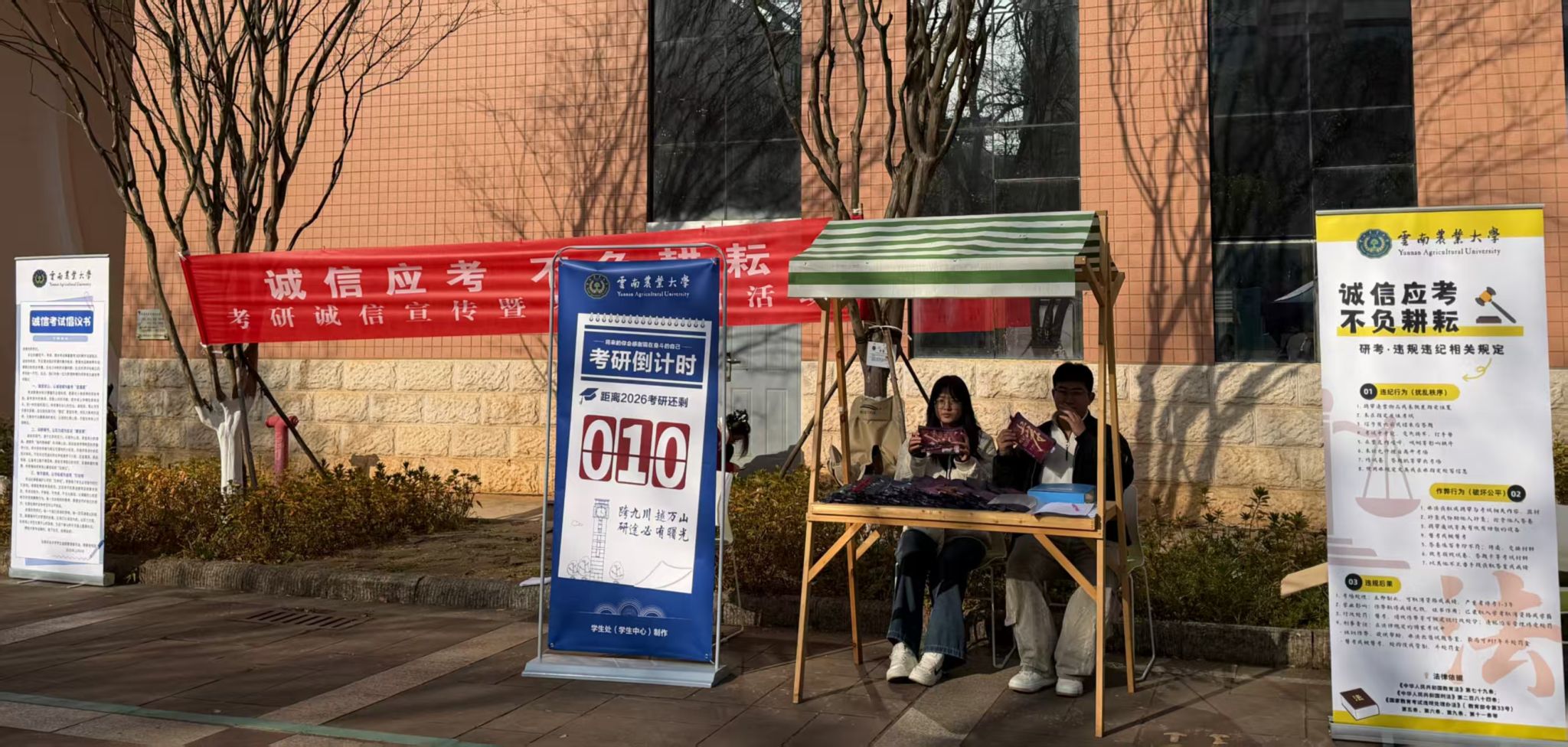 本站消息 为筑牢考研学子诚信应考思想防线,营造公平公正、风清气正的考试氛围,引导学子以端正考风奔赴考场。12月10日,学校学生中心在东西两校区图书馆门口分时段举办“诚信应考 不负耕耘”考研诚信宣传暨考前加油活动。