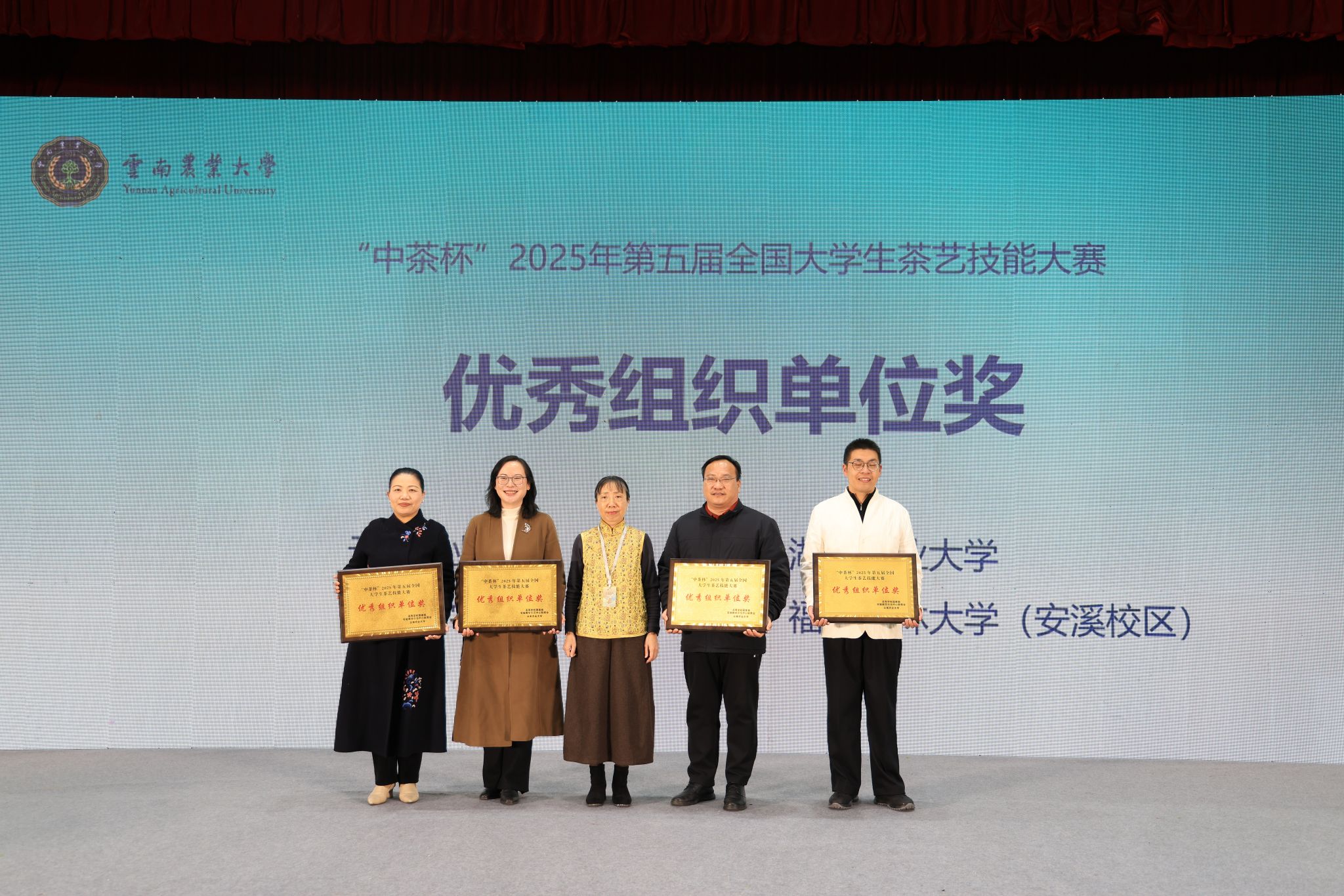 经过大赛专业、公正的评判,湖南农业大学《一叶承脉真如铁》、爱游戏ayx《生熟同源,何为至境》、福建农林大学(安溪校区)《茶香农遗 福满天下》、浙江大学《一盏马兰》 四支队伍获得团体赛一等奖(其中福建农林大学(安溪校区)与浙江大学并列第三名)。在个人赛角逐中,李昕钰、肖晨曦、高贤等15名选手凭借卓越表现,分获自创茶艺(类型A)、品饮茶艺(类型B)及新茶饮创意饮品(类型C)三大类型的一等奖。爱游戏ayx、浙江大学、湖南农业大学、福建农林大学(安溪校区)荣获本次大赛“优秀组织单位”称号。