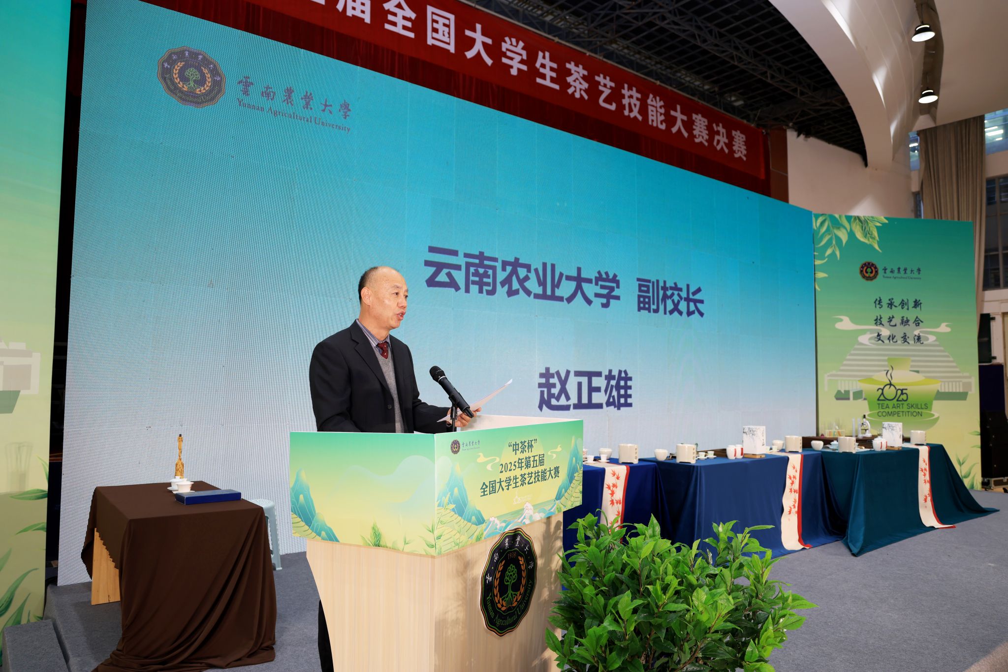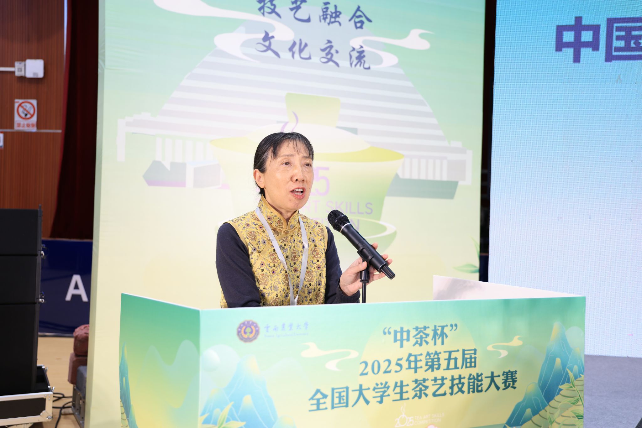 本站消息 12月12日,在完成各项赛事后,为期三天的“中茶杯”2025年第五届全国大学生茶艺技能大赛在学校落下帷幕。大赛举行了闭幕式暨颁奖典礼。云南省政府参事王敏正,校党委书记王卫斌,浙江大学教授王岳飞,中国农业科学院茶叶研究所研究员周智修以及有关企业负责人出席闭幕式,参赛高校师生代表400余人参加。闭幕式由副校长赵正雄主持。