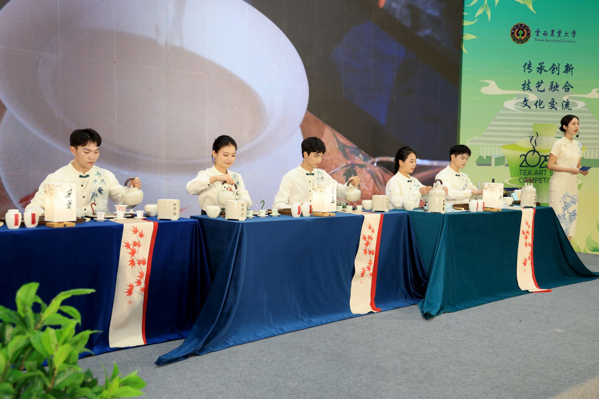 闭幕式上,湖南农业大学师生带来了才艺展示《一叶承脉真如铁》,节目通过艺术化的叙事,生动演绎了茶学专业三代人薪火相传、砥砺奋进的感人故事,将学科历史、人文精神与茶艺美学完美融合,深刻诠释了“茶学精神,代代相传”的永恒主题。云南中茶茶业有限公司进行了云南茶树种质资源生态之美与非遗技艺传承推介,展现了云南茶山“一山一味、一地一香”的独特生态画卷与匠心独运的非遗技艺魅力。