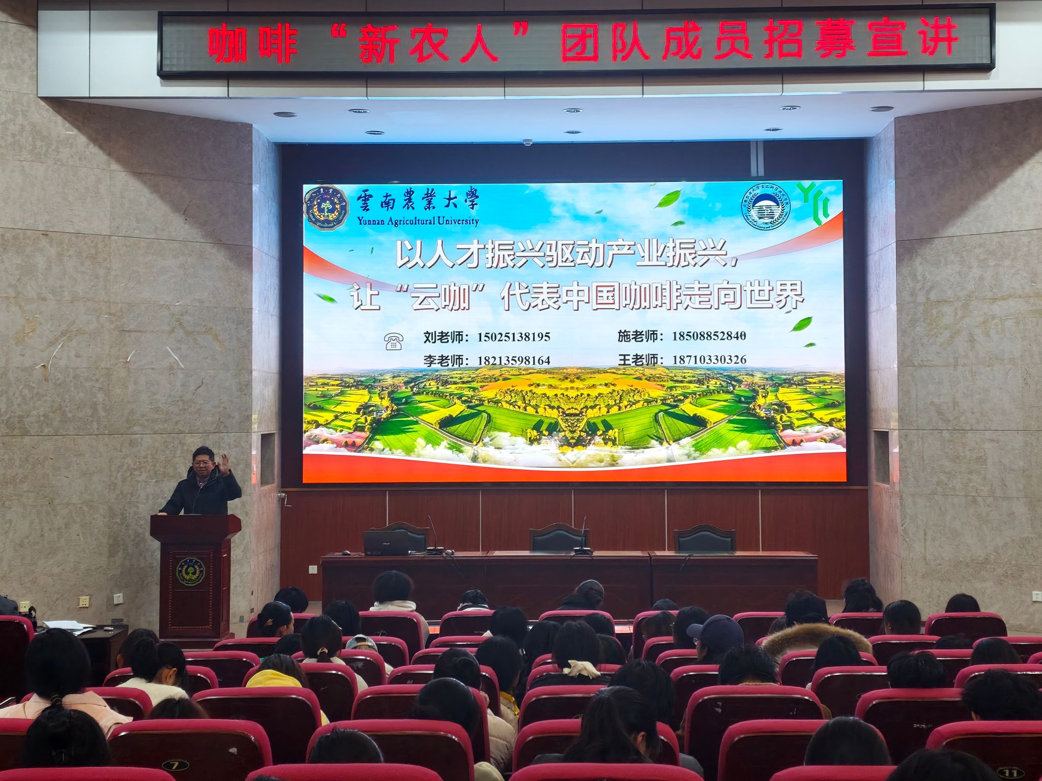 本站消息 为推进《爱游戏ayx关于加快培育扎根乡村一线“新农人”工作实施方案》的工作部署,把“云南咖啡还是代表着中国的”落实到教育科技人才一体化建设上,12月4日至12月7日,由副校长、咖啡科学与工程专业负责人李宏带队,食品科学技术学院牵头,联合热带作物学院、云南省咖啡现代产业学院,分别在校本部、普洱校区开展咖啡“新农人”团队招募宣讲、面试活动,全校450余名同学参加了宣讲会,参会学生涉及咖啡、食品、林学、经管、大数据等专业。