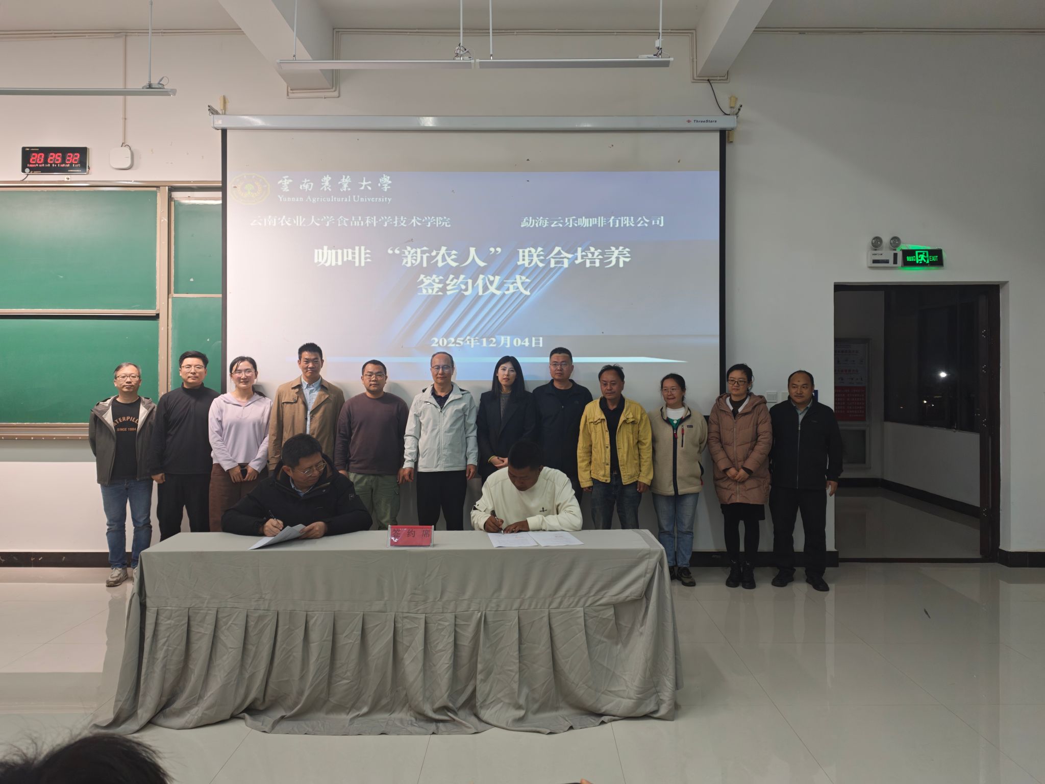 宣讲会互动环节气氛热烈,学生们就选拔标准、课程设置、发展路径等关切问题踊跃提问,与会老师均给予了详尽解答,现场反响热烈。其间,食品科学技术学院分别与勐海云乐咖啡有限公司、临沧秋珀庄园有限公司、保山比顿咖啡有限公司等3家企业签订了咖啡“新农人”联合培养协议,以及学校“新农人”实践教学基地协议。
