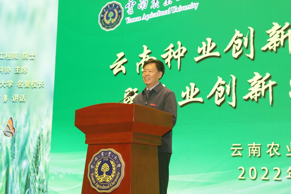 本站消息 2022年5月21日下午,云南种业创新研究院成立暨种业创新成果发布会在学校校友会堂举行。“时代楷模”、中国工程院院士、学校名誉校长朱有勇院士,省教育厅、省科技厅、省农业农村厅、省乡村振兴局、省林草局、省农科院、省林科院、西南林业大学等有关单位领导,校党委书记黎素梅、校长李永和以及相关企业负责人出席会议,学校其他校领导及部分师生代表参加会议。