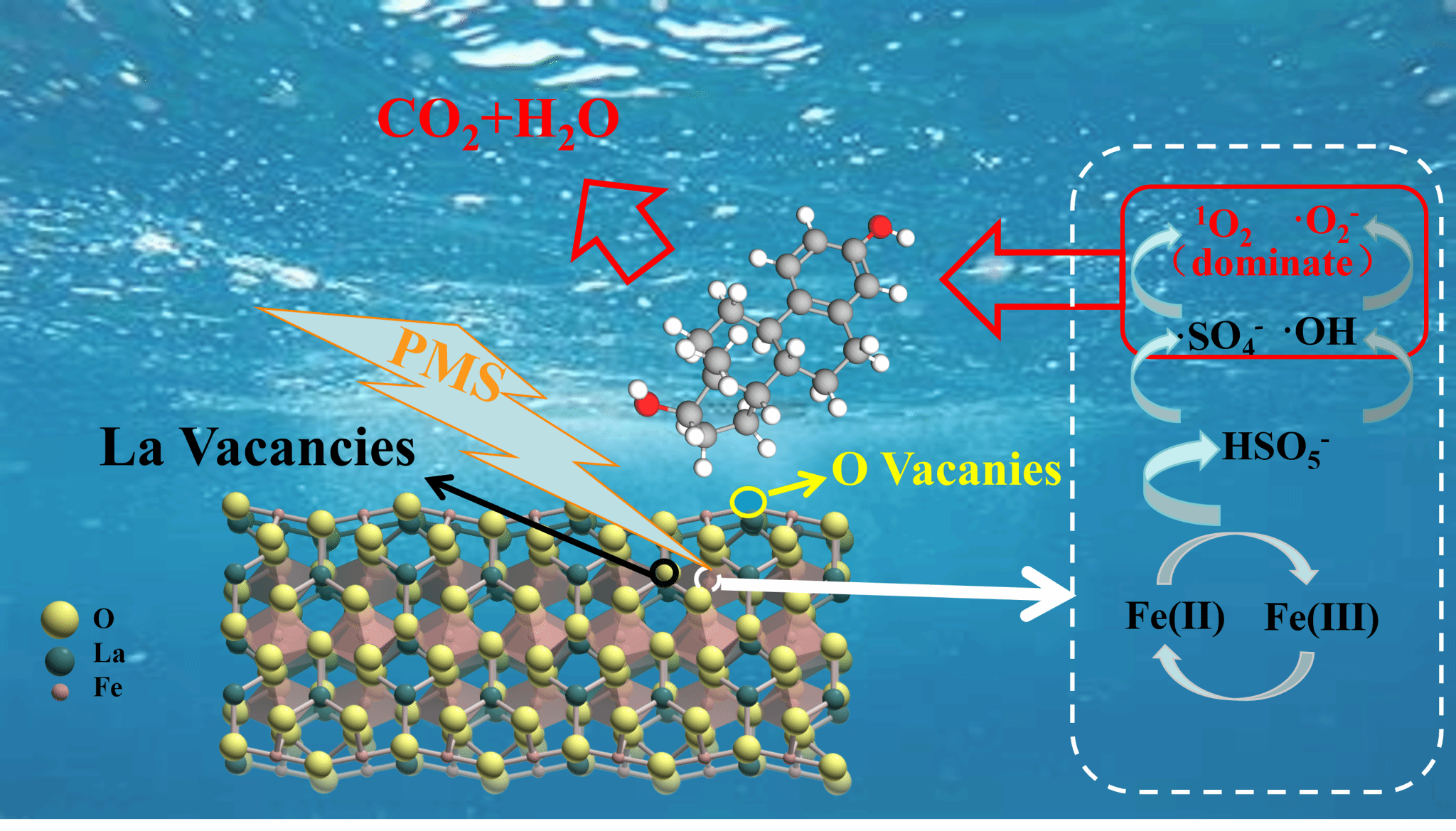 近年来钙钛矿材料在高级氧化领域备受关注,阳离子缺陷引入钙钛矿晶格结构可以为非均相催化过程提供活性位点。该研究证实具有A位阳离子缺陷的LaFeO3钙钛矿氧化物激活过硫酸盐能力显著提高,其独特的缺陷结构定向调控产生大量超氧自由基促进了LaFeO3电荷转移效率,增加了Fe(III)- Fe(II)-Fe(III)氧化还原循环中电荷转移。因此,A位阳离子缺陷LaFeO3/PMS体系对多种污染物表现出更强的降解性能,反应60 min实现了2 mg/L β-E2完全去除。在多种共存物质、较宽pH值环境、多次循环利用条件下,也显示出卓越的催化能力、高稳定性和高可重用性。对实际畜禽养殖废水β-E2降解率高达82.16%-99.25%,表明了该技术对组成复杂的实际水体雌激素高效降解方面的巨大应用潜力。